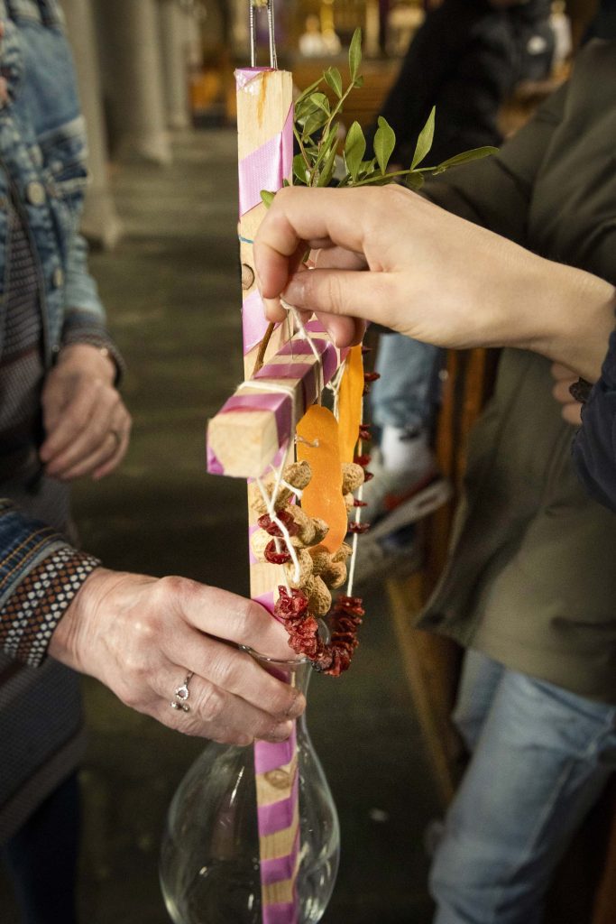 In de aanloop naar Pasen blijkt ook weer duidelijk dat de jongere generatie veel verhalen uit onze cultuur niet meer kent. Feestdagen, rituelen of spreekwoorden: de verhalen erachter zijn vaak niet meer bekend. Reden voor de Passiespelen om samen met basisschoolklassen op bezoek te gaan in de H. Familiekerk in Venlo. In de kerk waren kleine uitstallingen gemaakt met aansprekende voorwerpen uit het passieverhaal. Via de rondgang van Palmzondag naar Pasen, langs gebeurtenissen uit de Goede Week kwamen er steeds meer ‘versieringen’ voor ’t Palmhöltje bij. Het palmtakje, de pinda’s, rozijnen, eieren en een speciaal gebakken haantje, wat overigens door meerdere kinderen als een paashaas werd gezien want die kennen ze tenslotte beter van de bakker tegenwoordig. De begeleidster vanuit de kerk, Thea Kuijer, wist de kinderen te boeien door het verhaal uit de bijbel naar deze tijd te halen. Kinderen vertelden enthousiast over wat ze tijdens vakanties nog meer in kerken hadden gezien. Natuurlijk zitten er in schoolklassen naast veel niet gelovig opgevoede, kinderen ook moslimkinderen. De ’ontdekking’ dat ook in hun geloof Jezus een belangrijke profeet is, was voor de meeste kinderen nieuw. Het zouden geen kinderen zijn als ze tijdens het bezoek niet enthousiast naar het zakje met de 30 zilverlingen op zoek gingen en vol bravoure de uitgestalde Romeinse helmen opzetten. Jongens en meisjes voelden zich meteen een echte Romeinse soldaat. Al met al een speelse manier om kinderen met oude verhalen uit onze Christelijke cultuur kennis te laten maken.